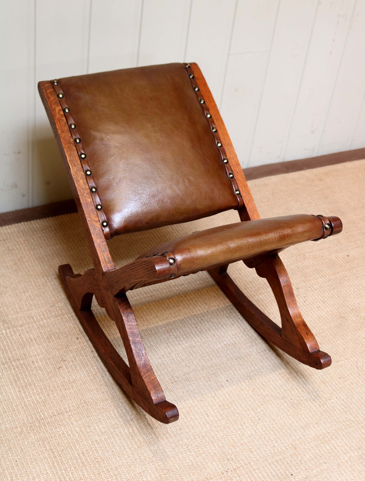 Oak & Leather Rocking Footstool c.1900