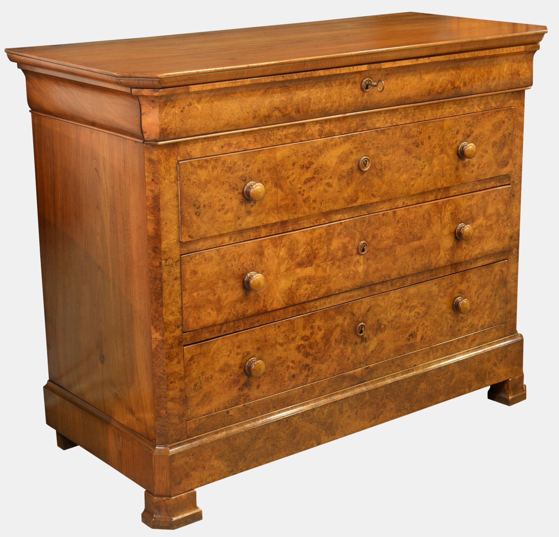 Oak Lined Burr Walnut Chest of Drawers (1 of 1)