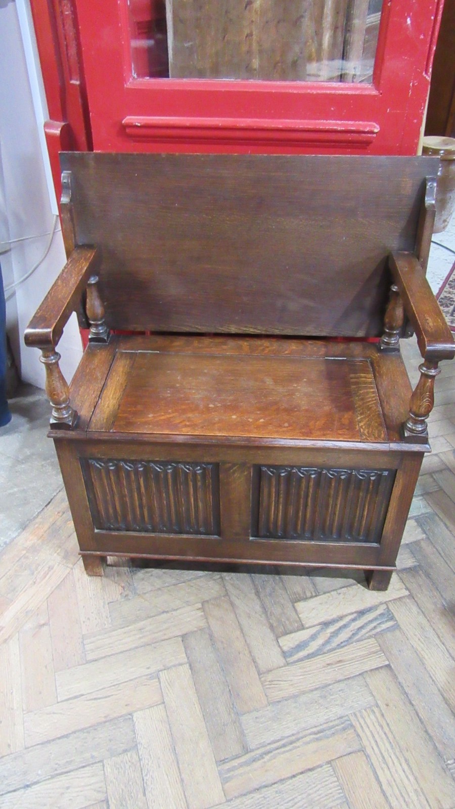 Oak Linen Fold Monks Bench