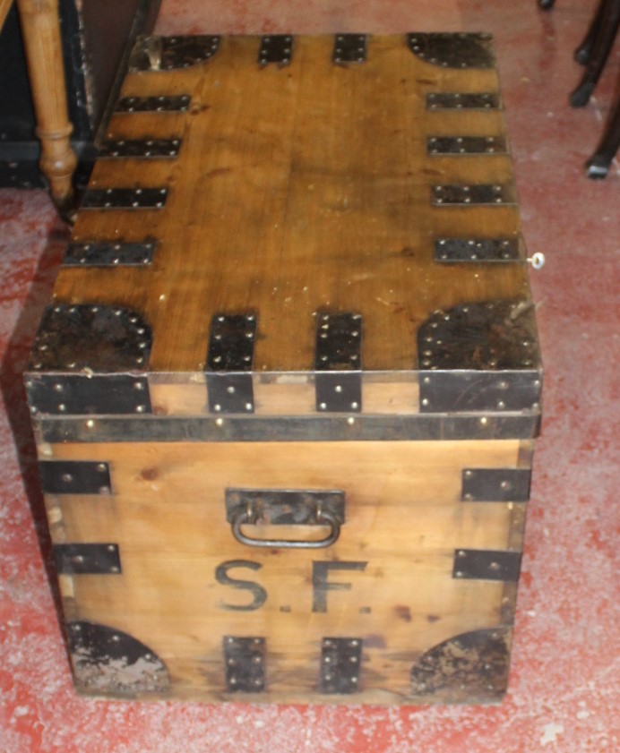 Oak Metal Banded Trunk - Zinc Lined with 2 Keys c.1880