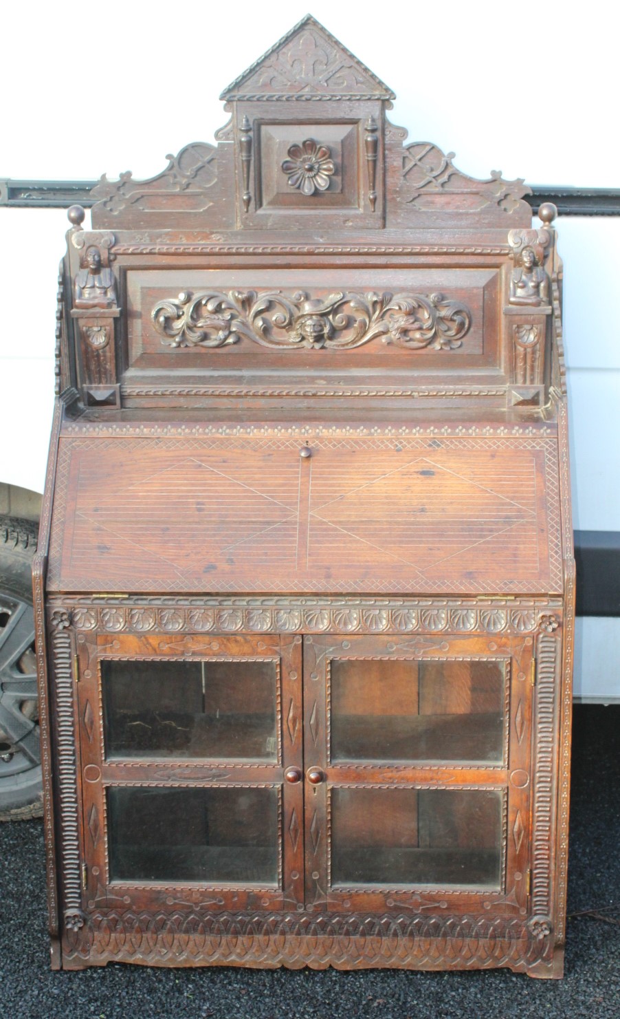 Oak Over Carved Breton Bureau c.1910