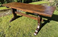 An oak Refectory table, of wonderful warm colour and patina, with a thick solid top. All in excellent condition. Recently cleaned and waxed. No wobbles, and an excellent and very practical kitchen or dining table. Dating to the early 1900s.