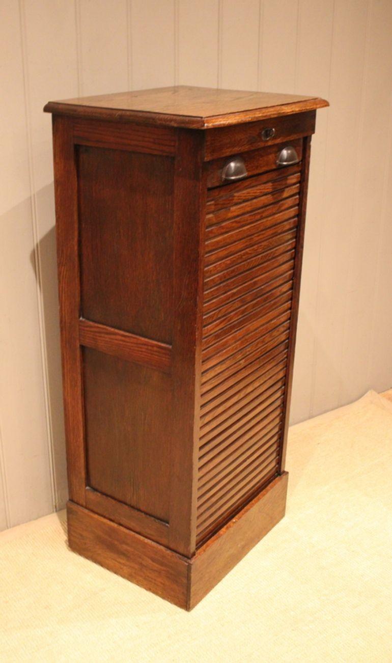 Oak Single Tambour Front Filing Cabinet