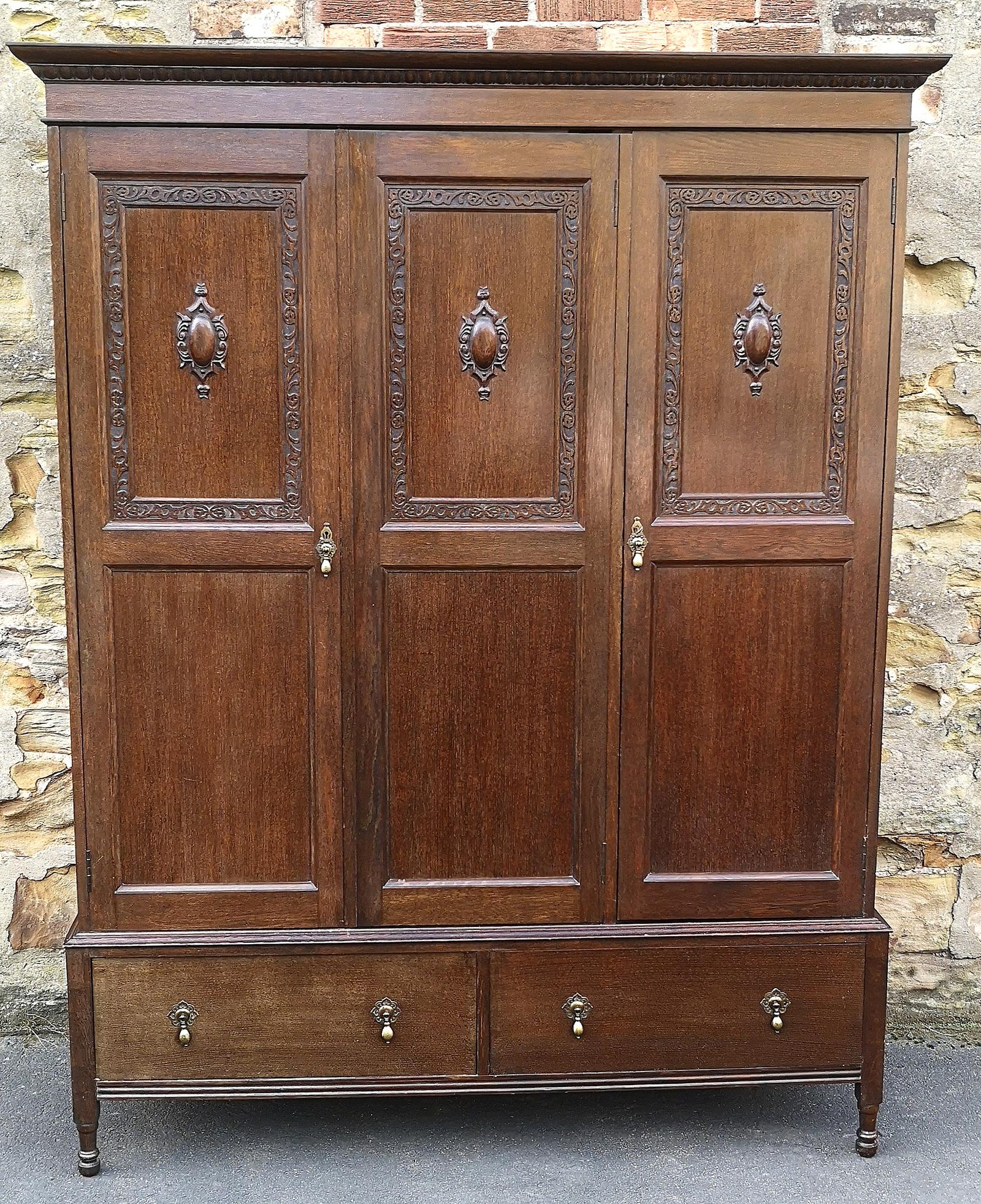 Oak Triple Door Wardrobe with Carved Decoration (1 of 14)