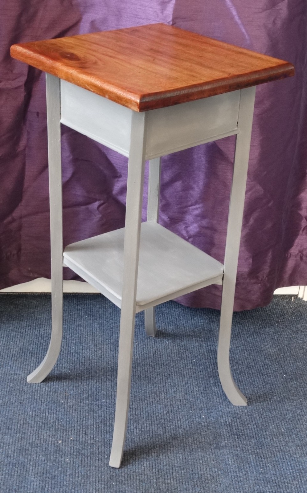 Oak Two Tier Occasional Table / Plant Stand Gray Painted Base