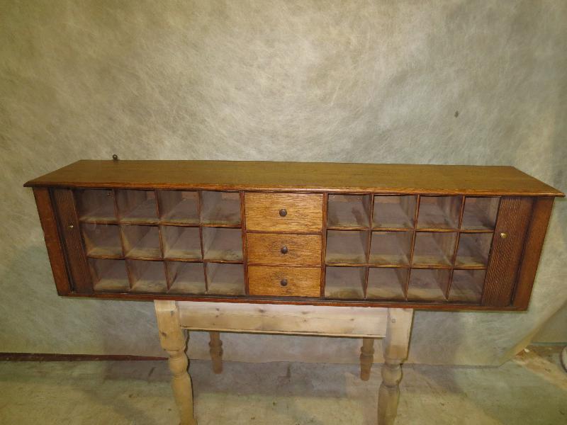 Oak Wall Hanging Tambour Fronted Cubby Holes