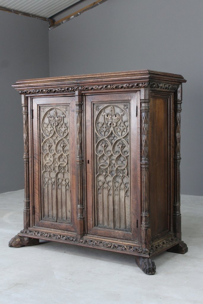Oak & Walnut French Gothic Cupboard