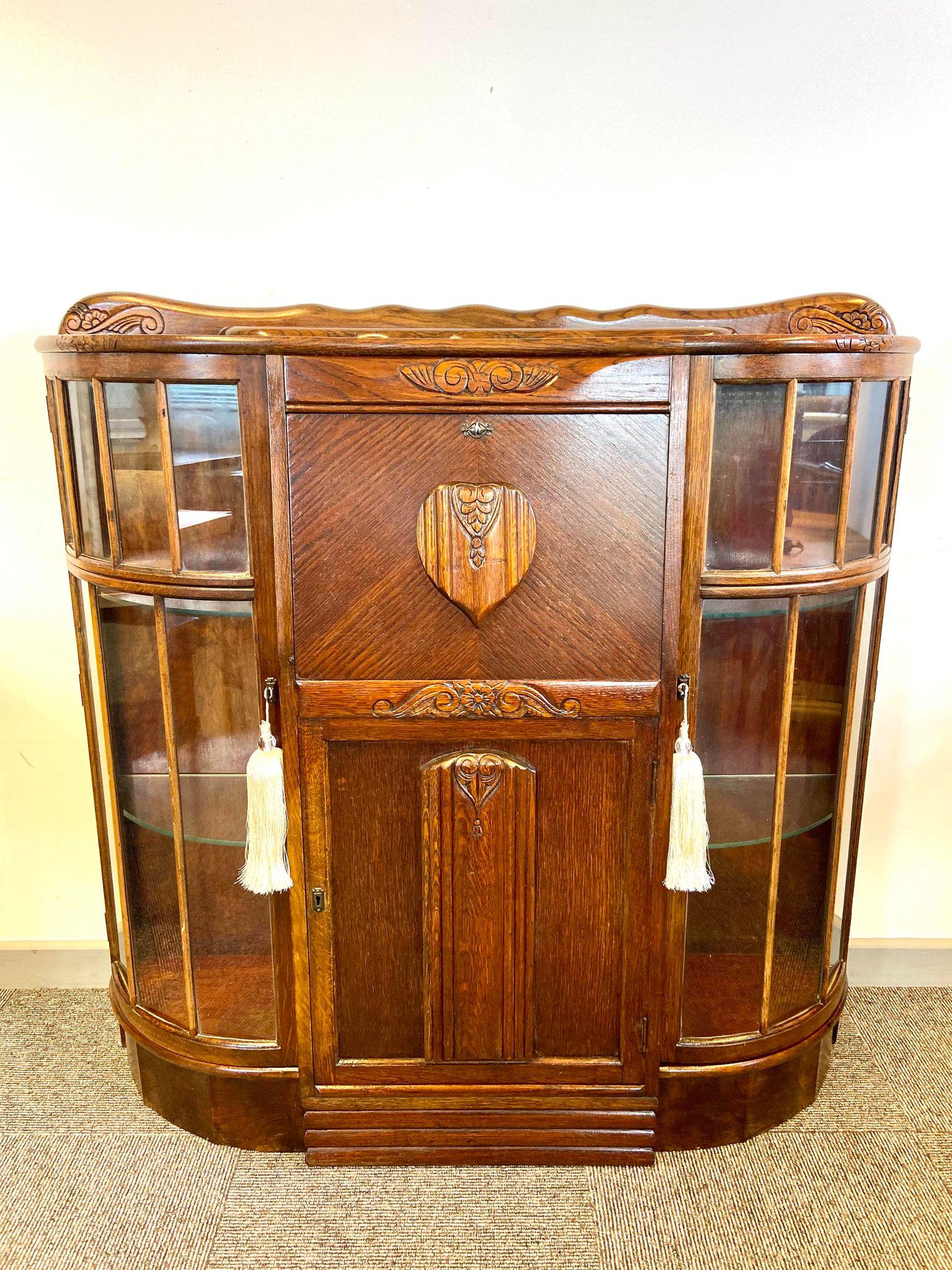 Oak Writing Bureau Bookcase / Display Cabinet - Made in England c.1930