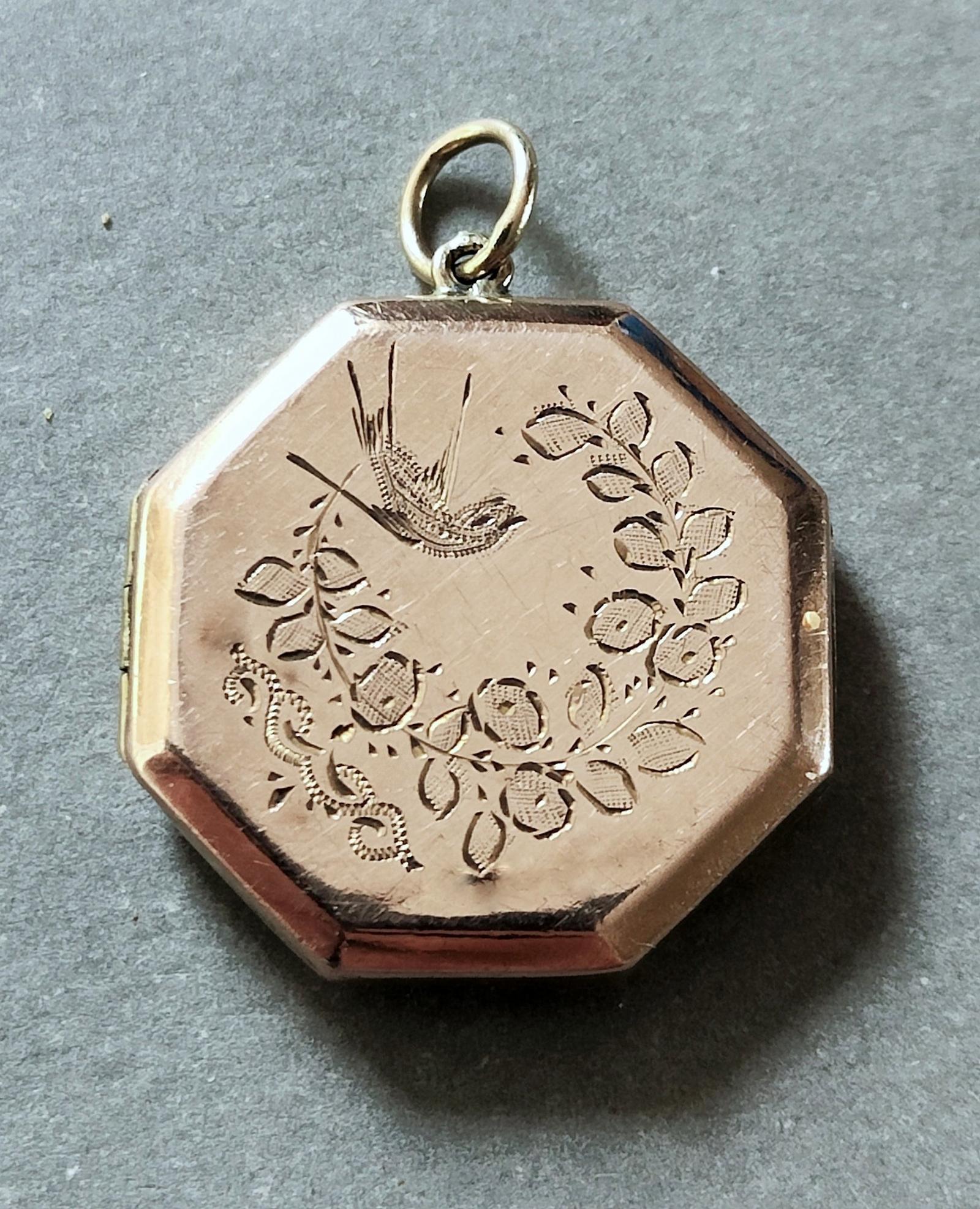 Octagonal Antique Victorian 9ct Back & Front Locket with Birds