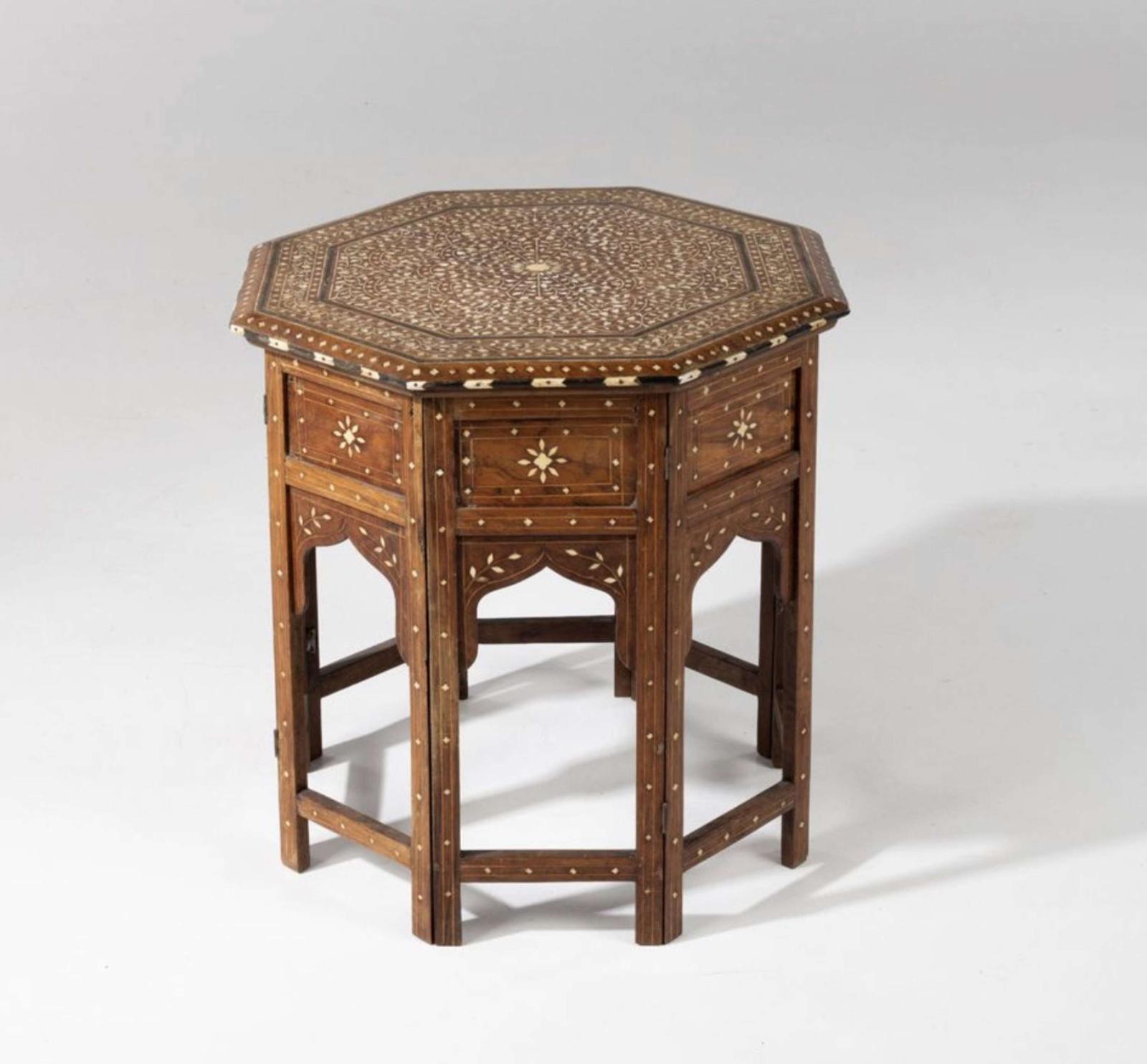 Octagonal Bone Inlaid Occasional Table - India c.1900
