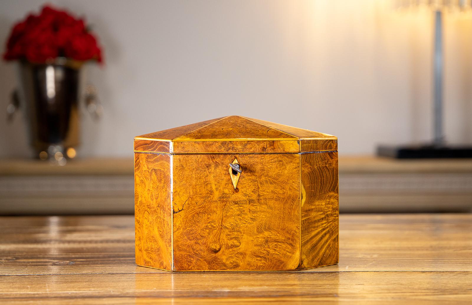 Octagonal Burr Elm Tea Caddy c.1820