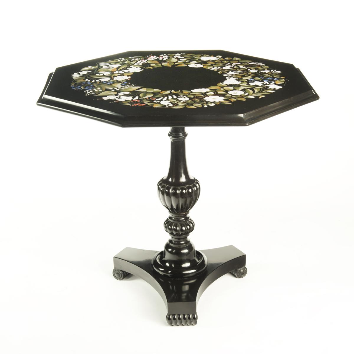 Octagonal Derbyshire Black Marble Table with Lapis Lazuli, Attributed to Tomlinson (1 of 7)