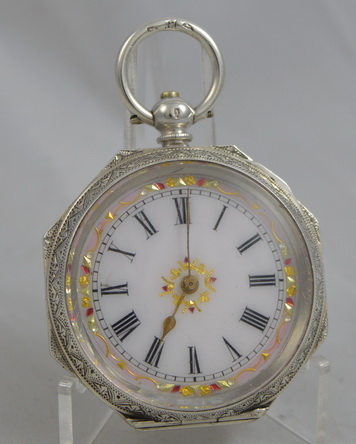 Octagonal Ladies Silver Pocket Watch (1 of 1)