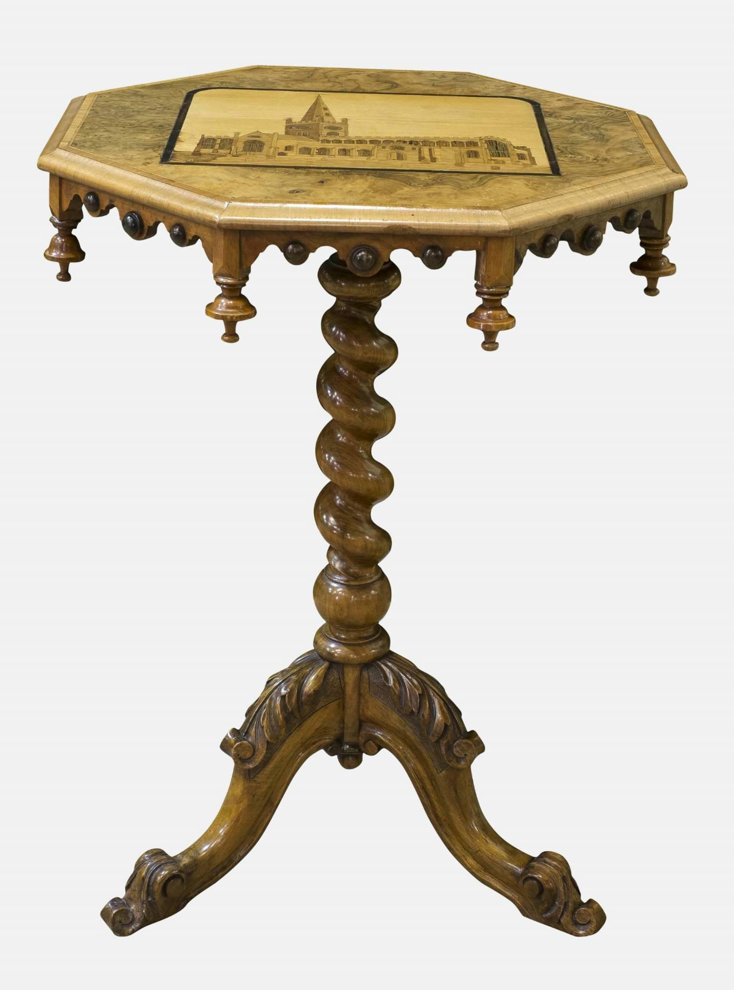 Octagonal Occasional Table with Parquetry Scene (1 of 1)