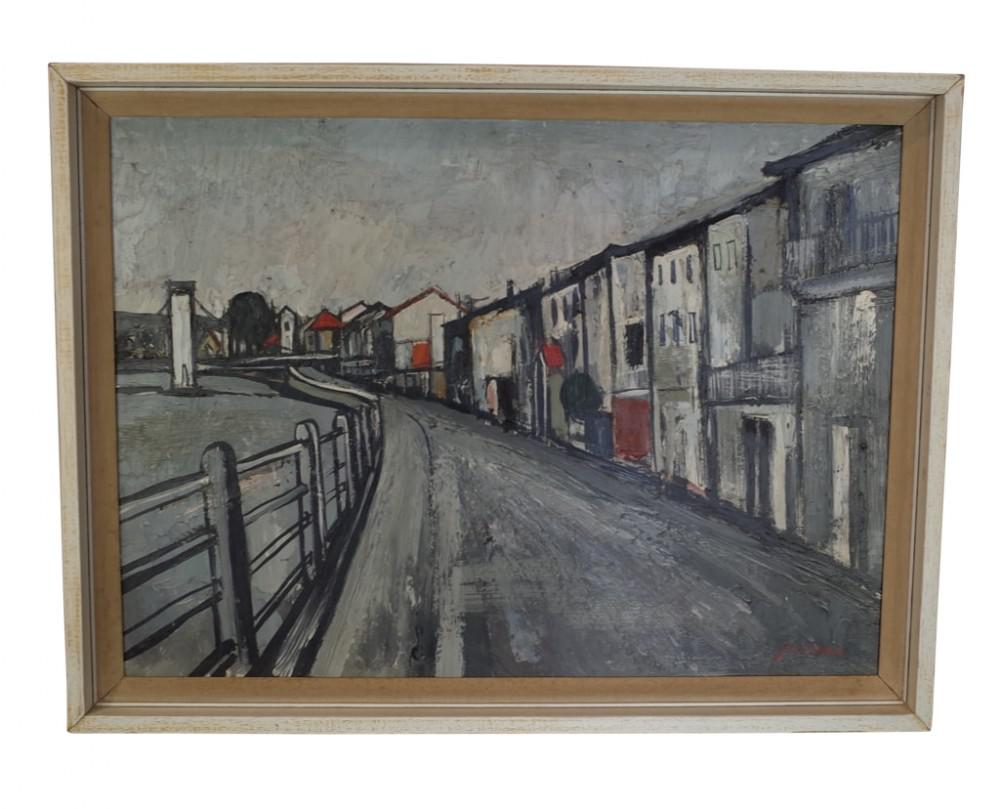 Oil on Board of Abstract Street Scene c.1950