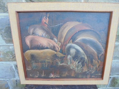 Oil on Board Prodigal Son by S J Ntiro (1923-1993)