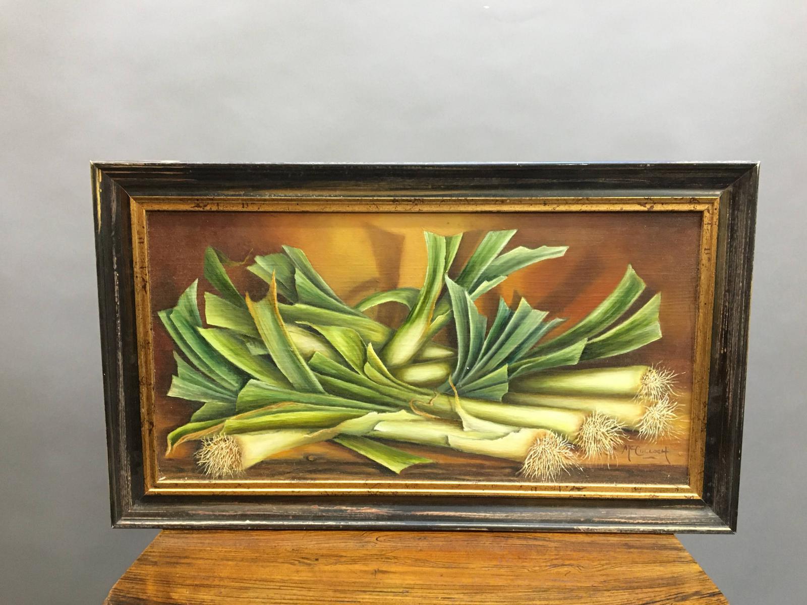 Oil on Board- Still-life Leeks