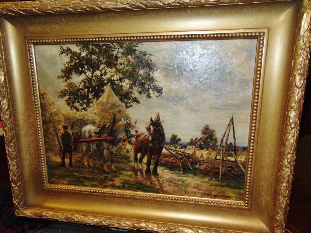 Oil on Canvas Gathering in Hay by J.C.Gray