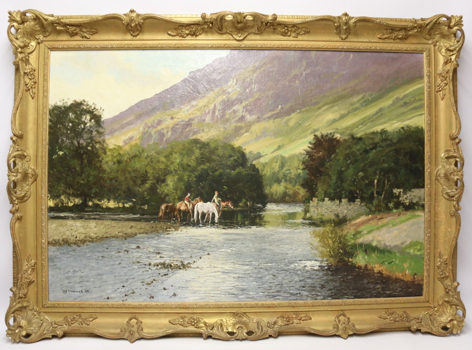 Oil on Canvas Lake District View of the River Derwent by W R Jennings, 1969