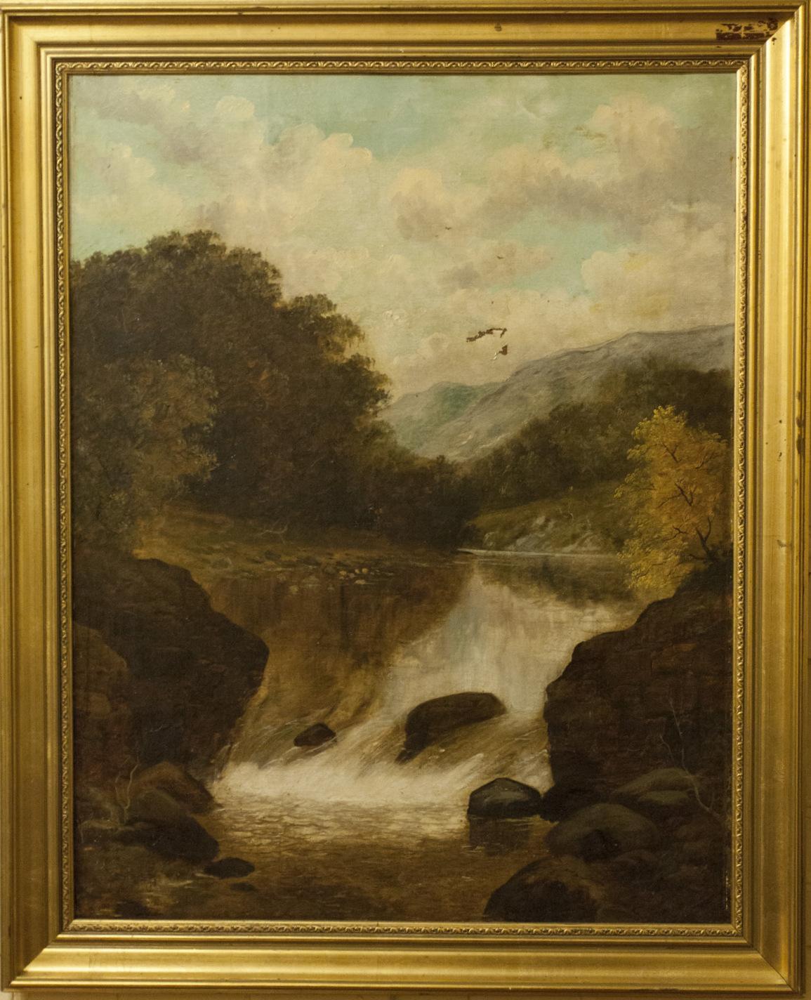 Oil on Canvas of a Scottish Highland Waterfall Scene