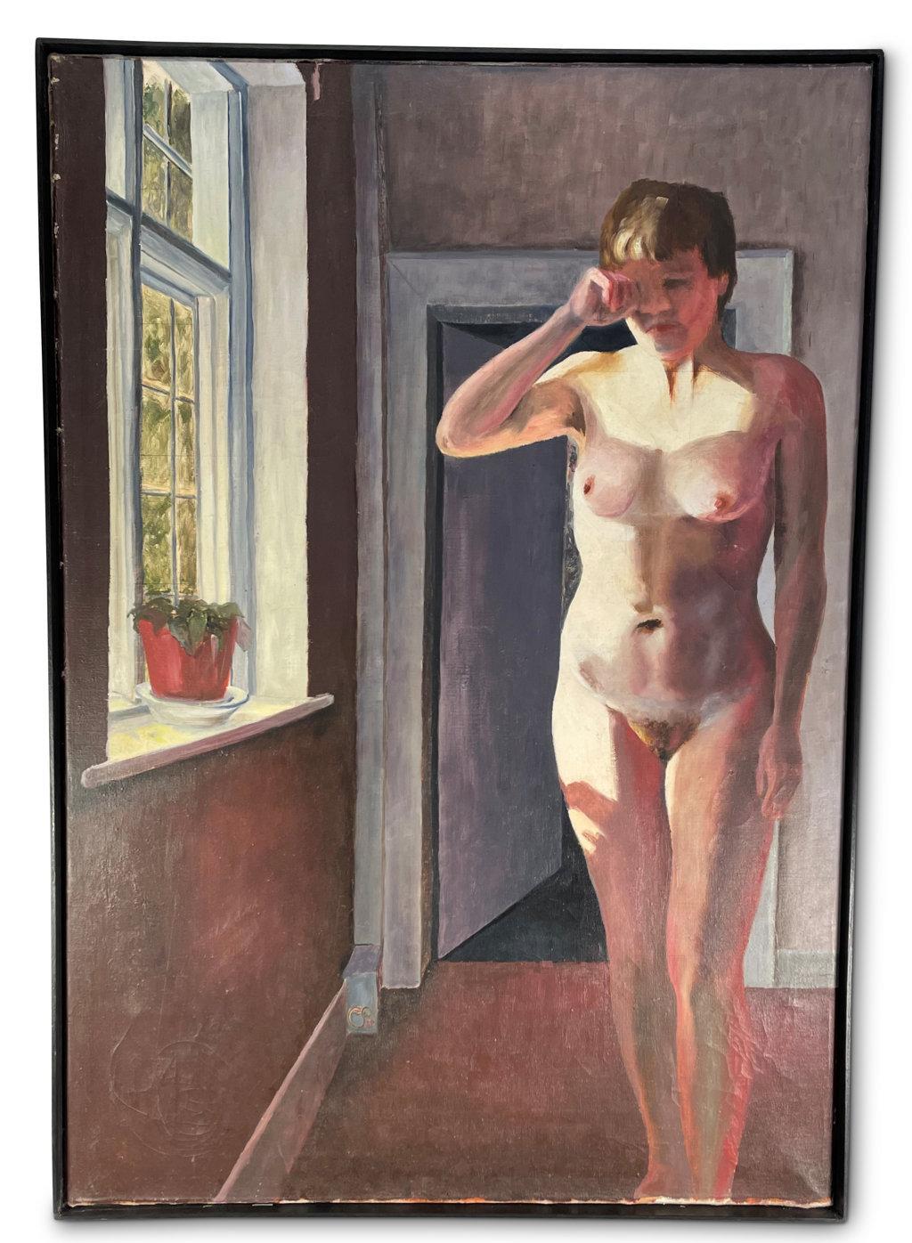 Oil on Canvas of Female Nude Standing by Guiliano Ponzi
