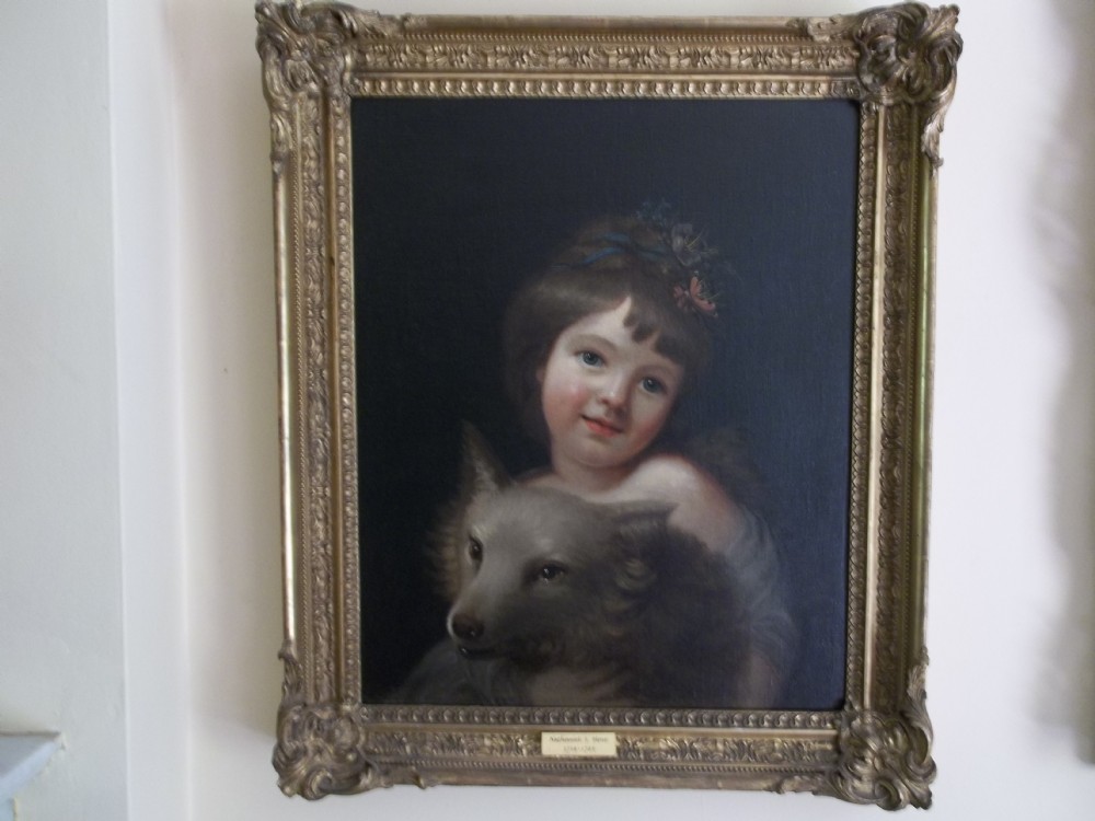 Oil on Canvas Portrait of Julia Metcalfe with Pomeranian Dog / Studio of Nathanial Hone
