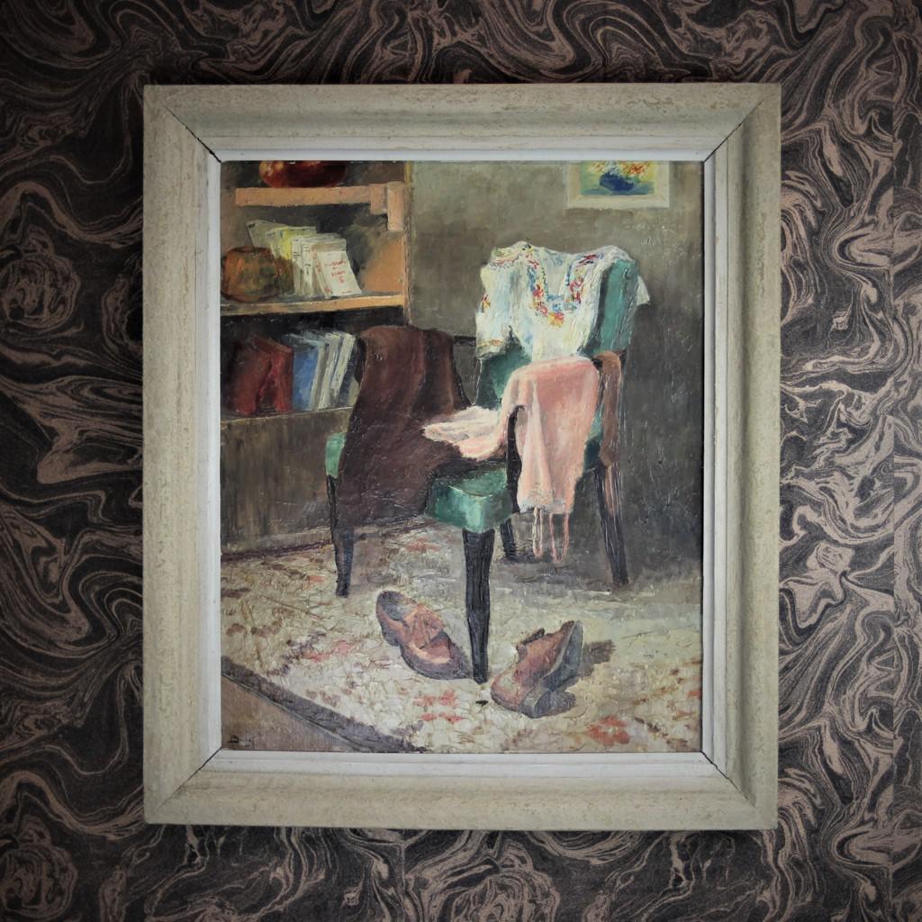 Oil on Canvas Scene with Bedroom Chair