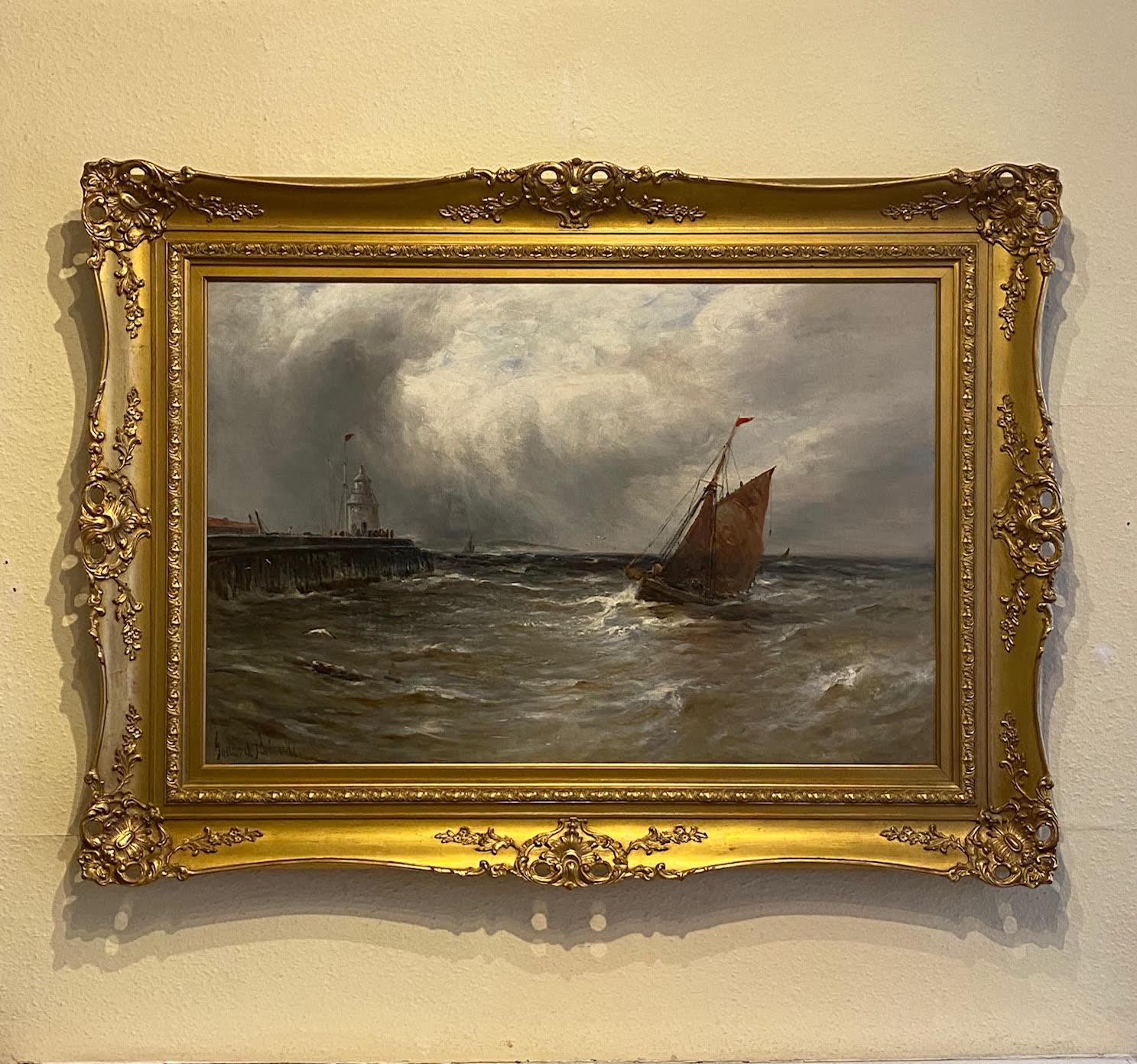 Oil on Canvas – “Squally Weather, Gorleston Harbour” By Gustave De Breanski