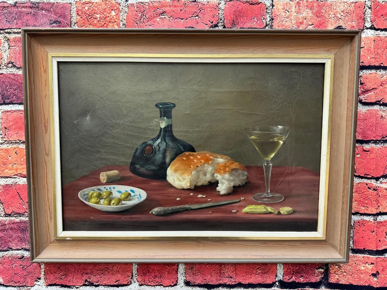 Oil on Canvas Still Life Bread & Wine Brian Davies c.1970