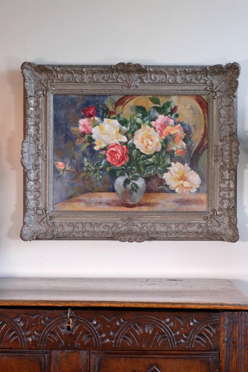 Oil on Canvas Still Life of Roses in Vase - James Hockey