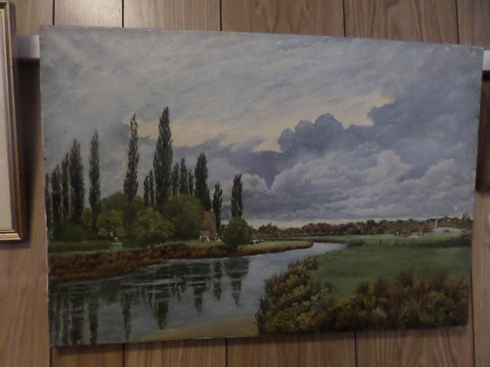 Oil on Canvas which has been laid on board, Painting of a Pastoral Scene. Nicely done. Victorian