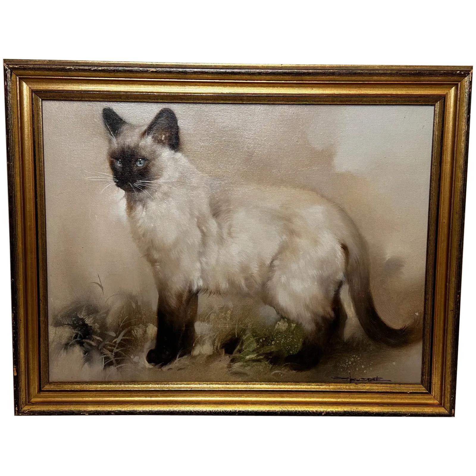 Oil Painting Animal Portrait Siamese Cat Animal c.1920