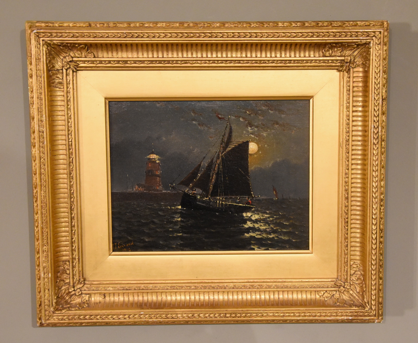 Oil Painting by John James Everard “Coastal Scene by Moonlight”