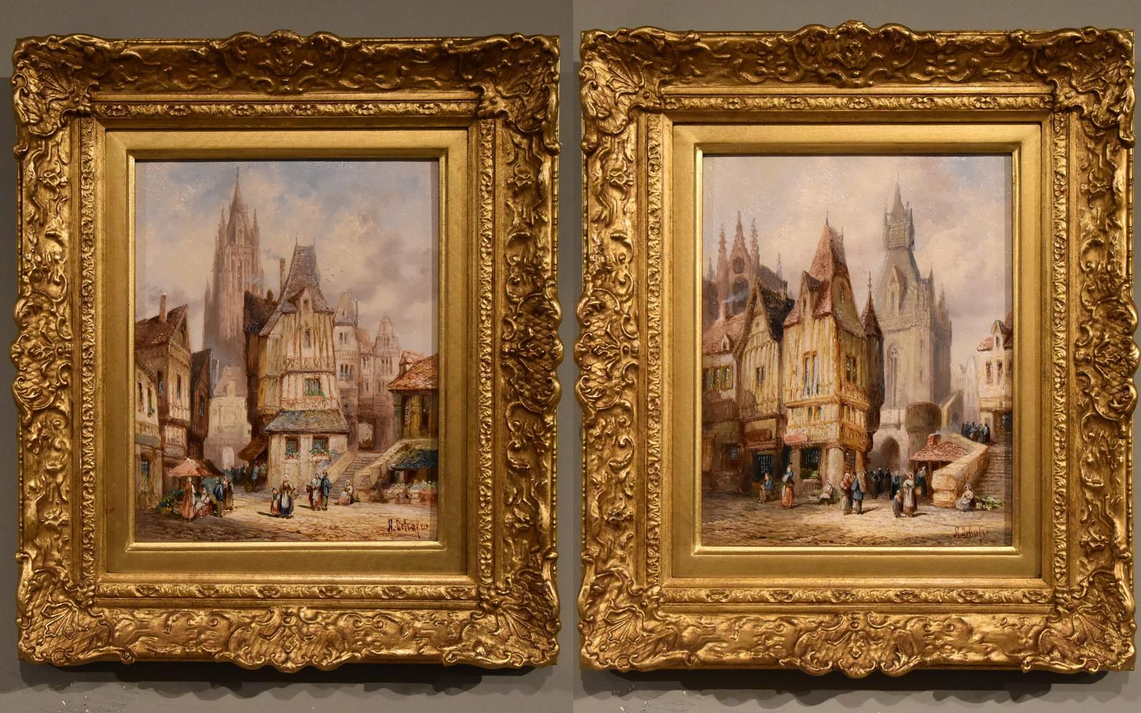 Oil Painting by Pair Henry Schafer - Fecamp Normandy, Nuremburg, Germany