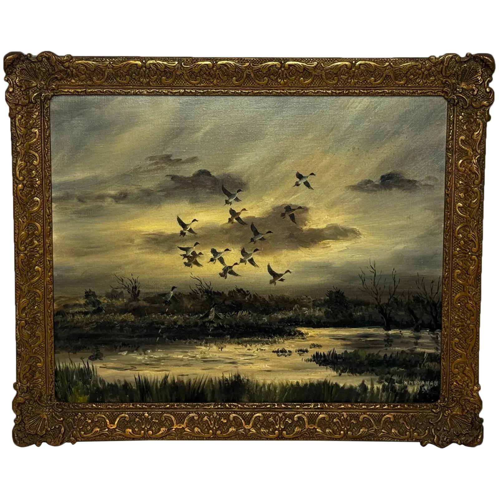 Oil Painting Canadian Ducks Flushed Out Wetlands British Columbia Hugh Monahan