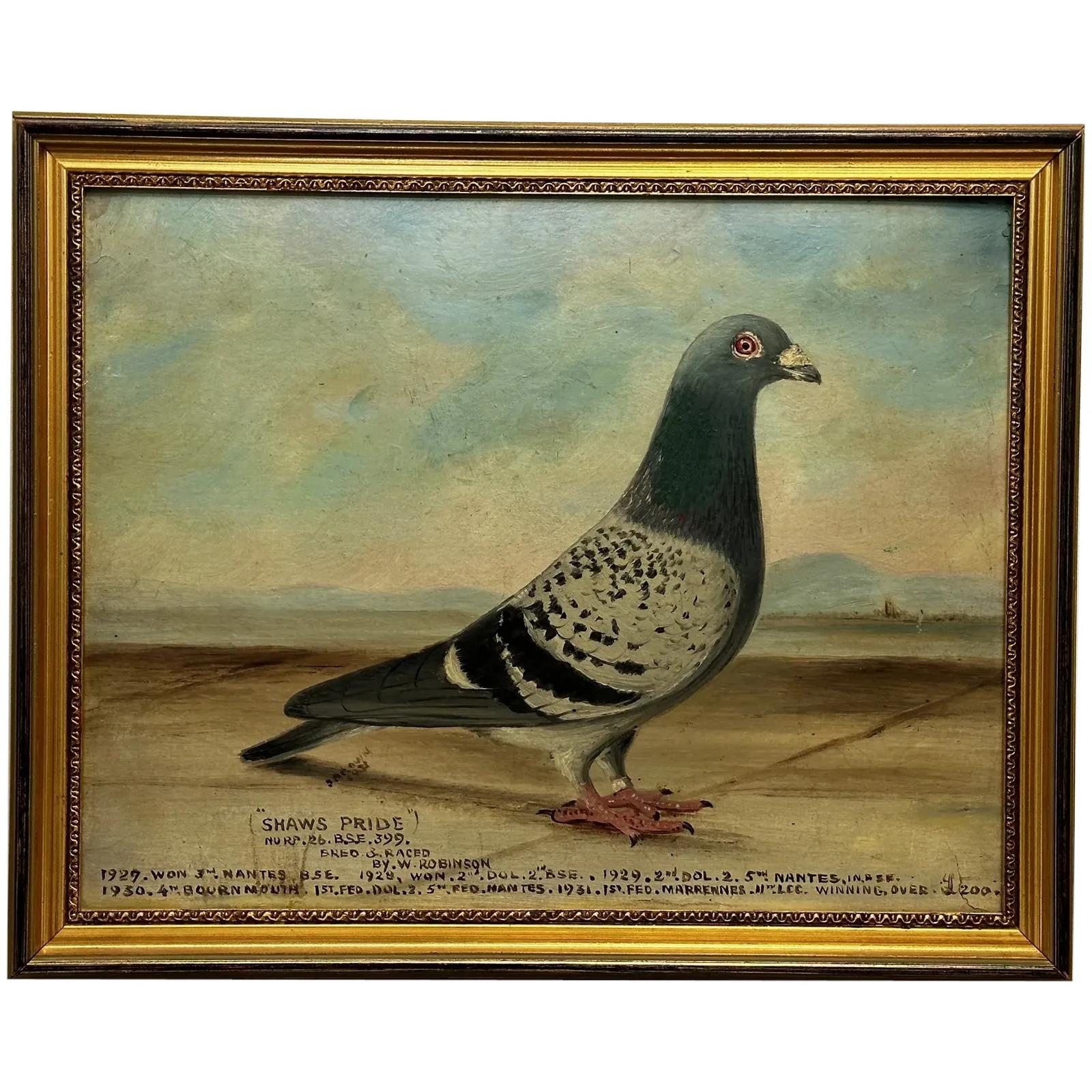 Oil Painting Champion Racing Pigeon Shaws Pride J Brown, Bred J Robinson c.1931