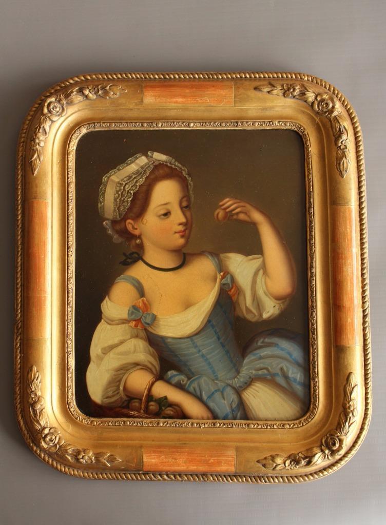 Oil Painting Girl Eating a Peach C.1850 (1 of 1)