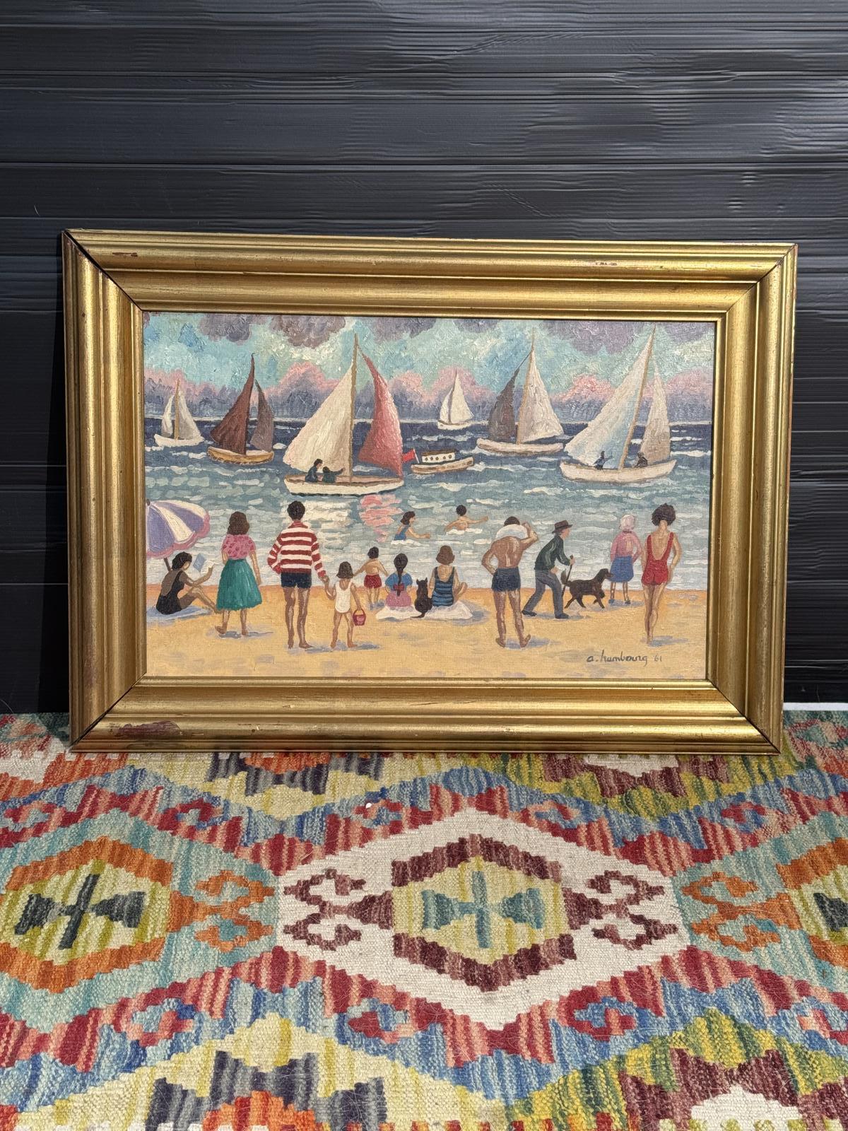 Oil Painting of Beach Sailing Scene (1 of 6)