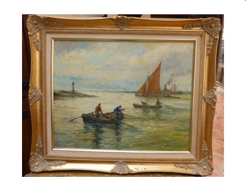 Oil Painting of Fisherman Retrieving Nets Off Medway Coast by Artist Andrew Kennedy (One of a Pair Offered) (1 of 1)