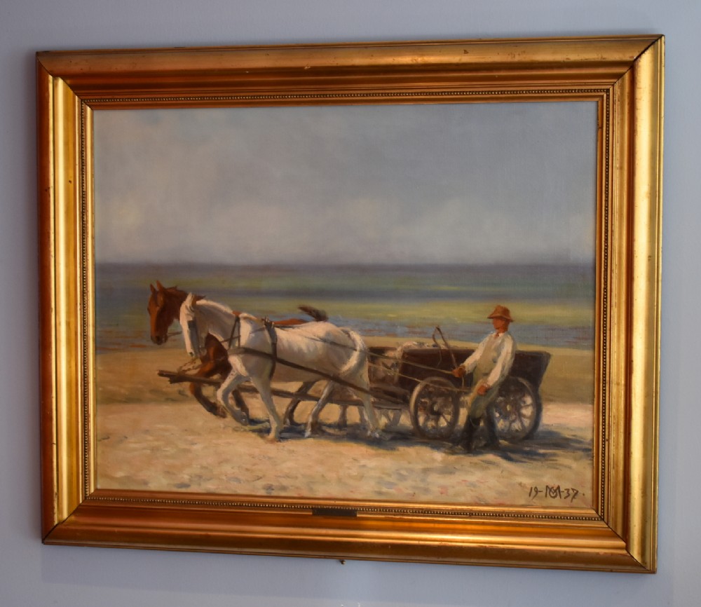 Oil Painting of Horses & Wagon on the Beach by Oscar Matthiesen (1 of 1)