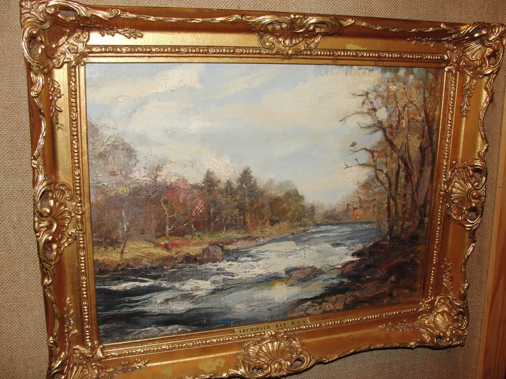 Oil Painting of River Chon, Aberfoyle by Archibald Kay Rsa