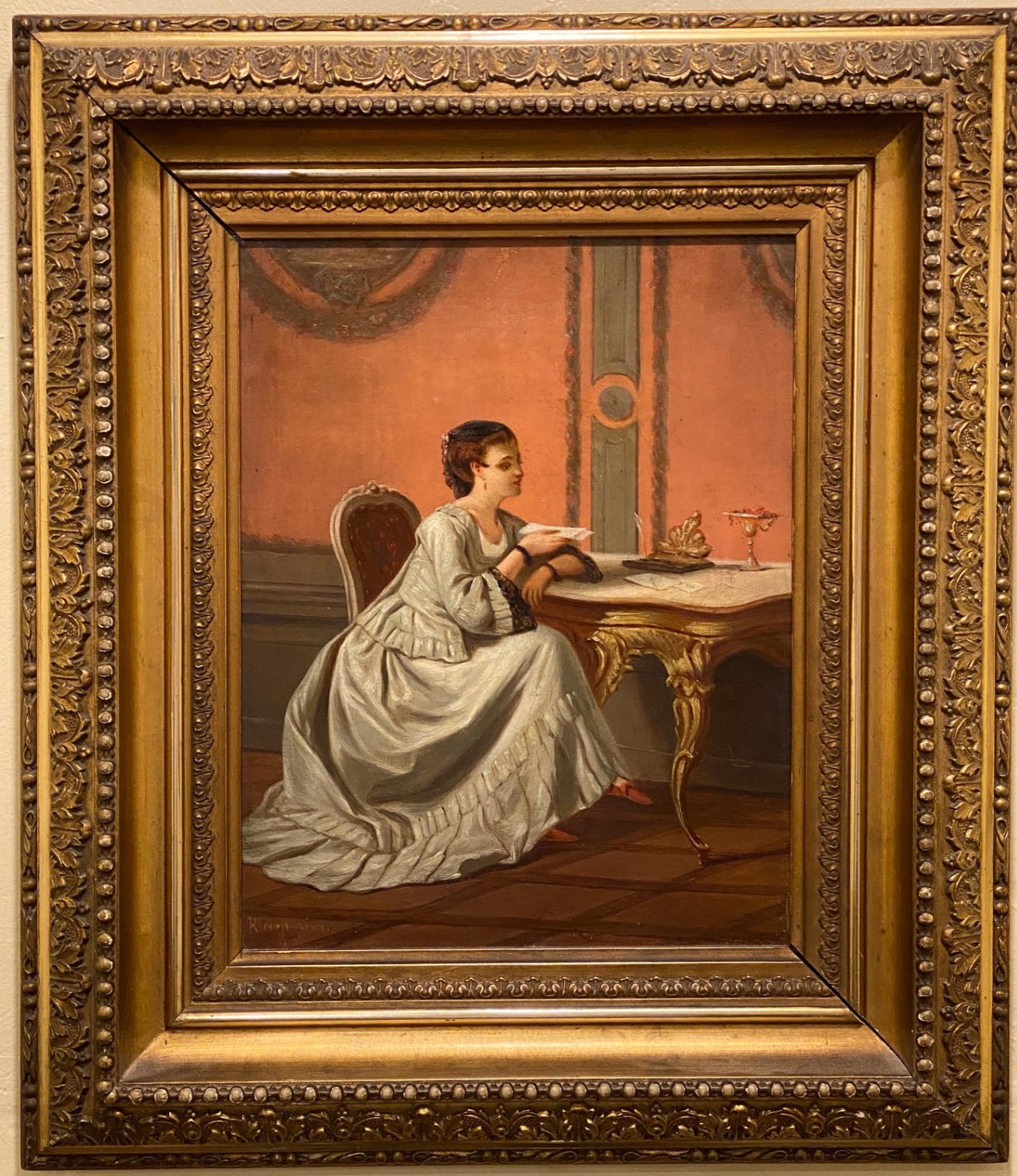 Oil Painting on Canvas ‘the Letter’ by H. Carp, C.1880