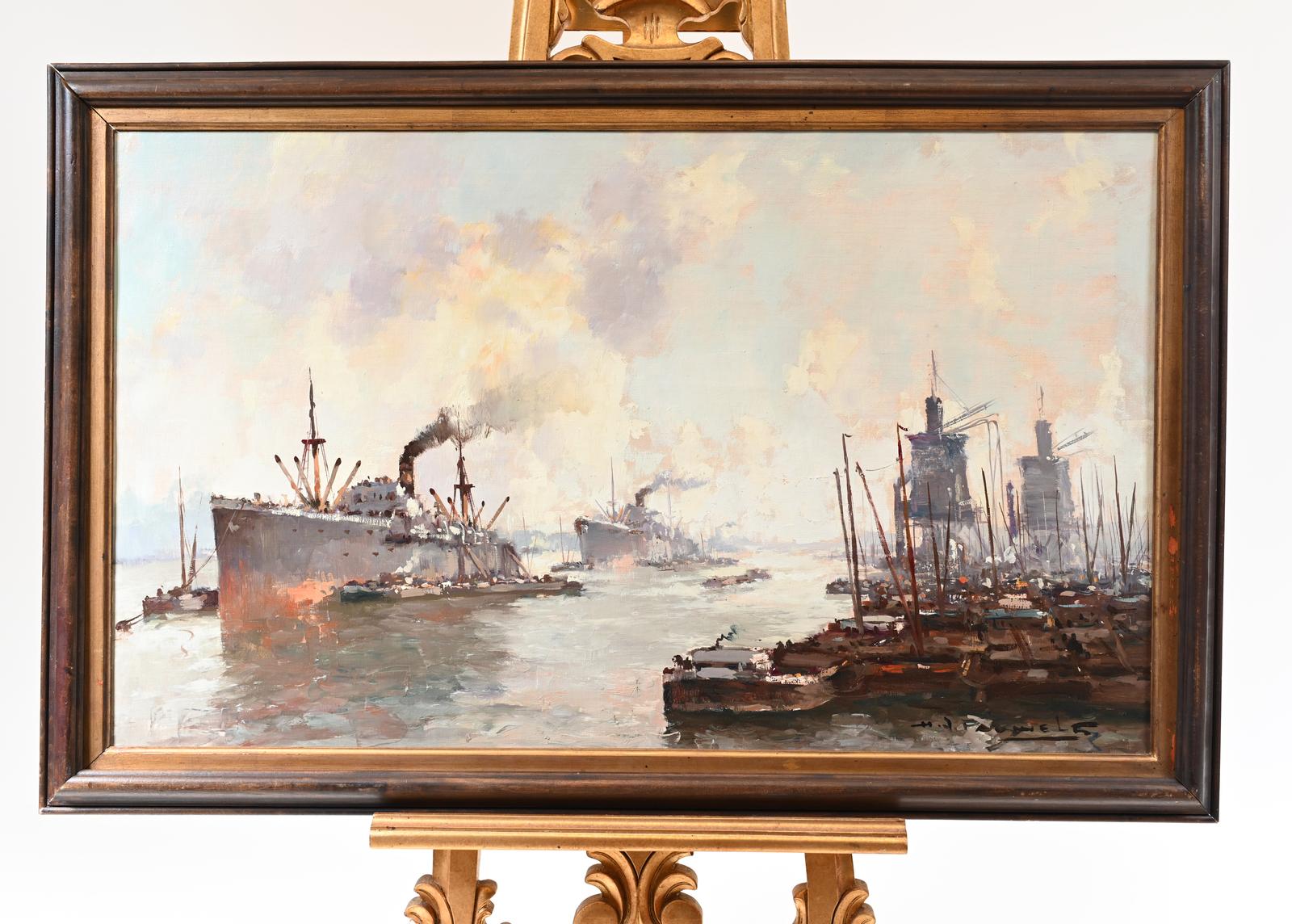 Oil Painting Ostend Maritime Ship Signed Pauwels Antique Art
