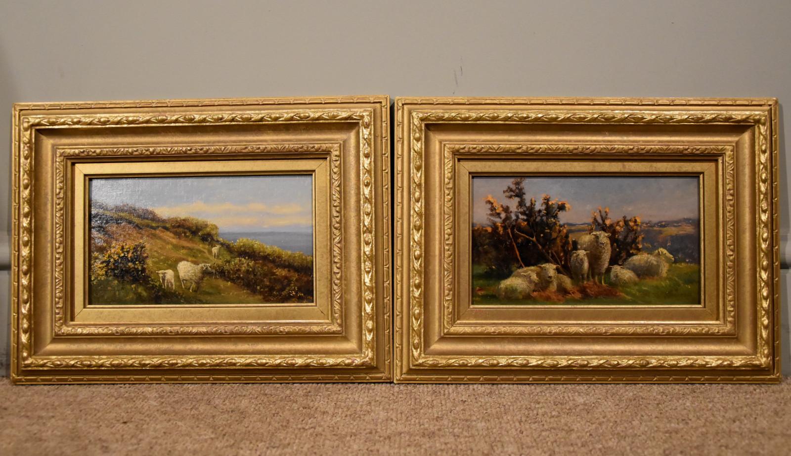 Oil Painting pair by William Sidney Cooper “Sheep in a Coastal Landscape”