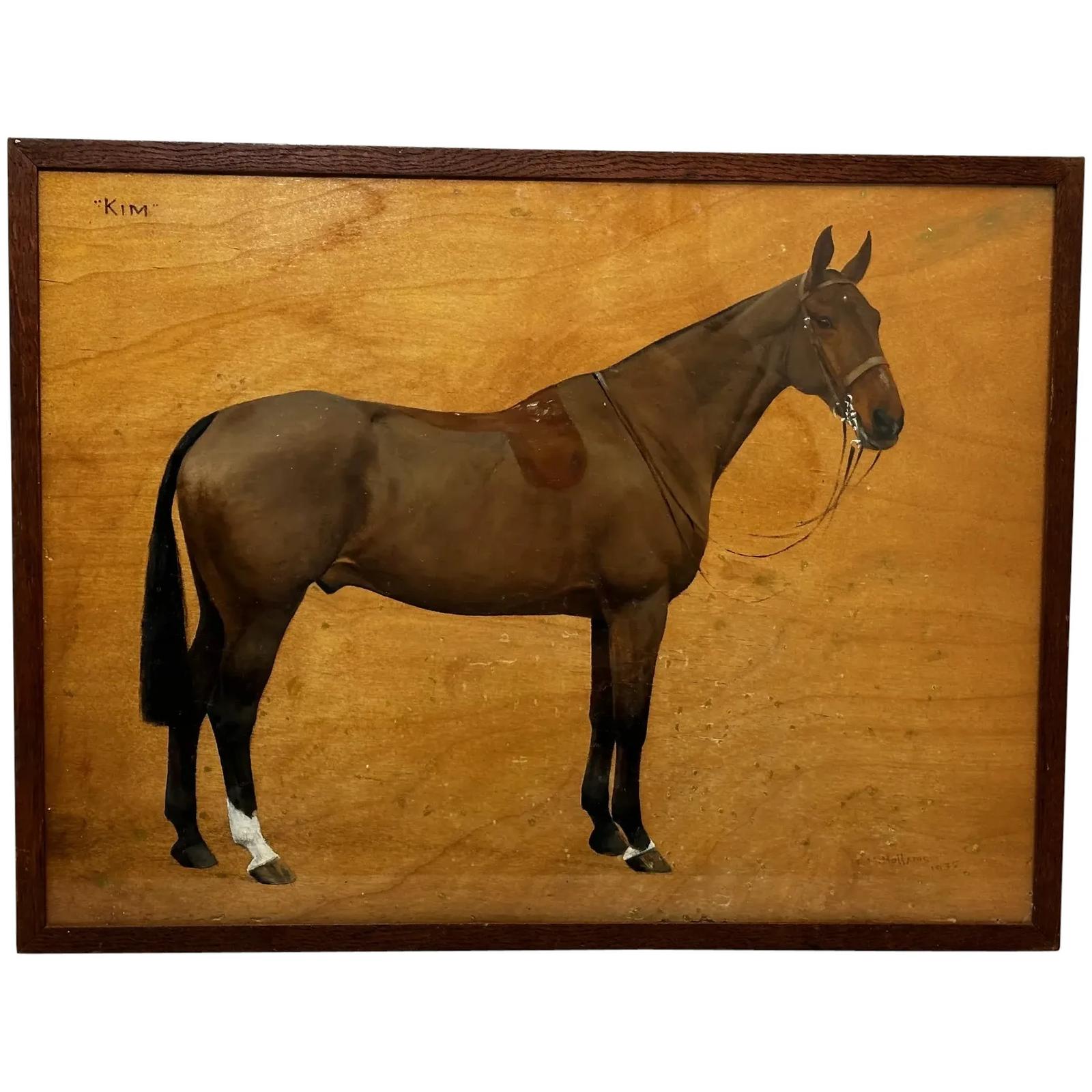 Oil Painting Portrait of Kim Mare Bay Hunter Horse by Frances Mabel Hollams