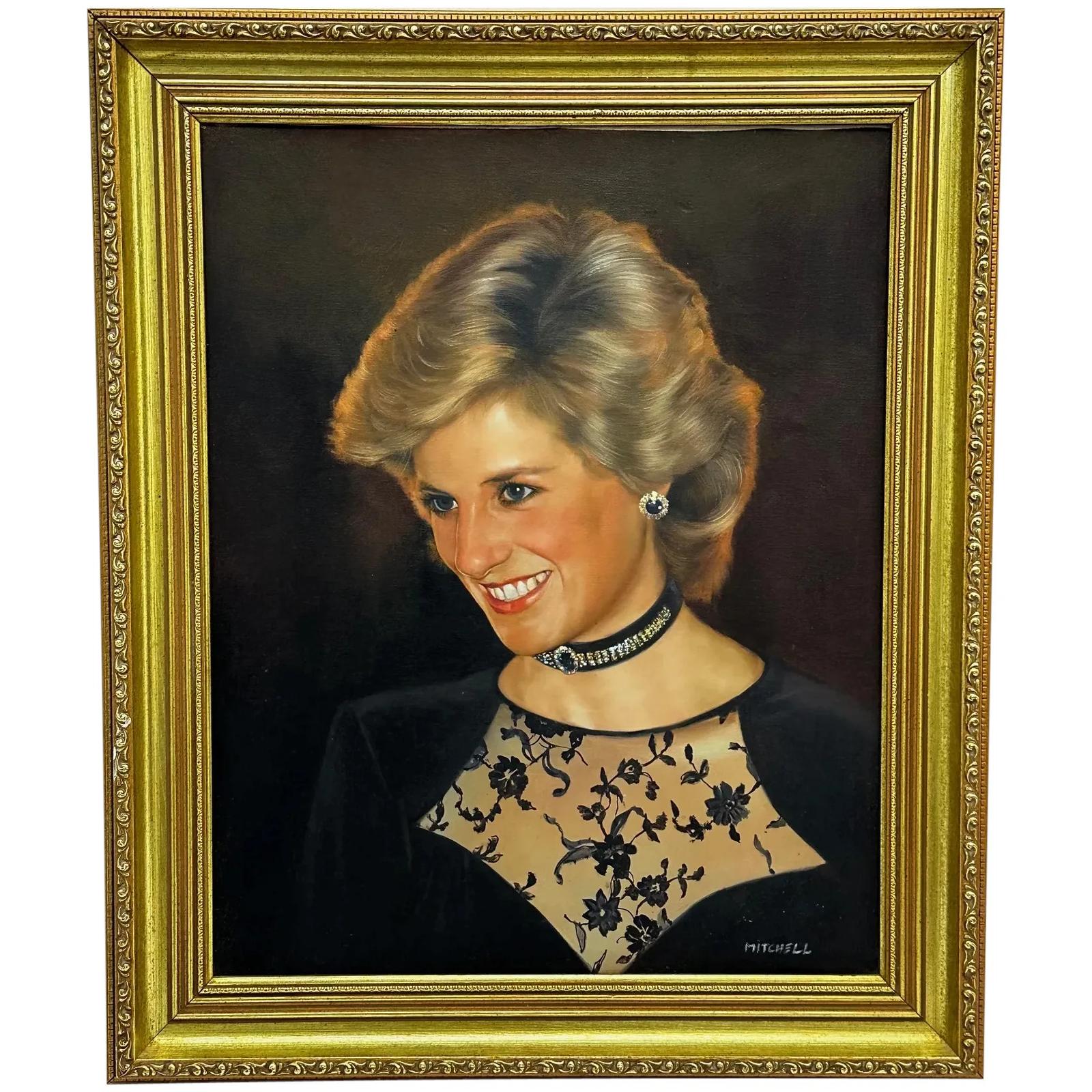Oil Painting Princess Diana Diamond Sapphire Choker Midnight Blue Velvet Dress