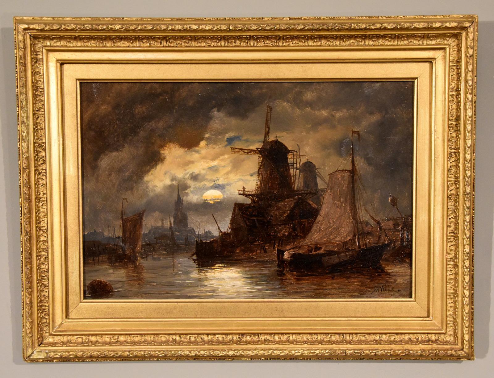 Oil Painting Richard Henry Nibbs “Moonlight at Arnheim”