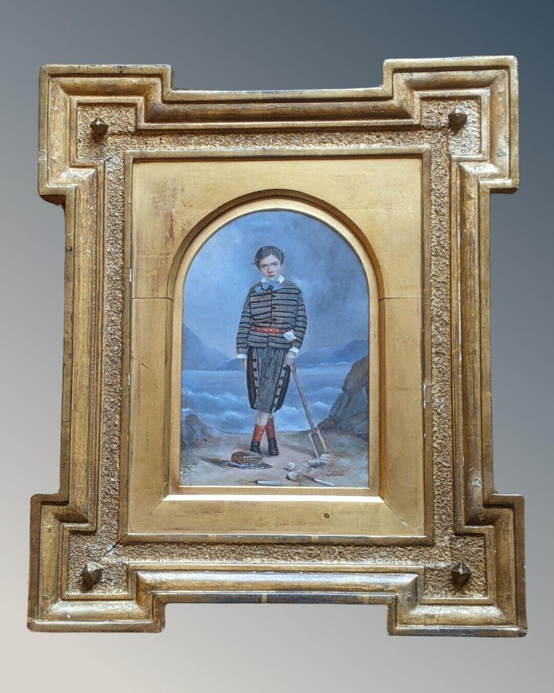 Oil Portrait of Young Irish Boy on Beach Gilt Frame (1 of 8)