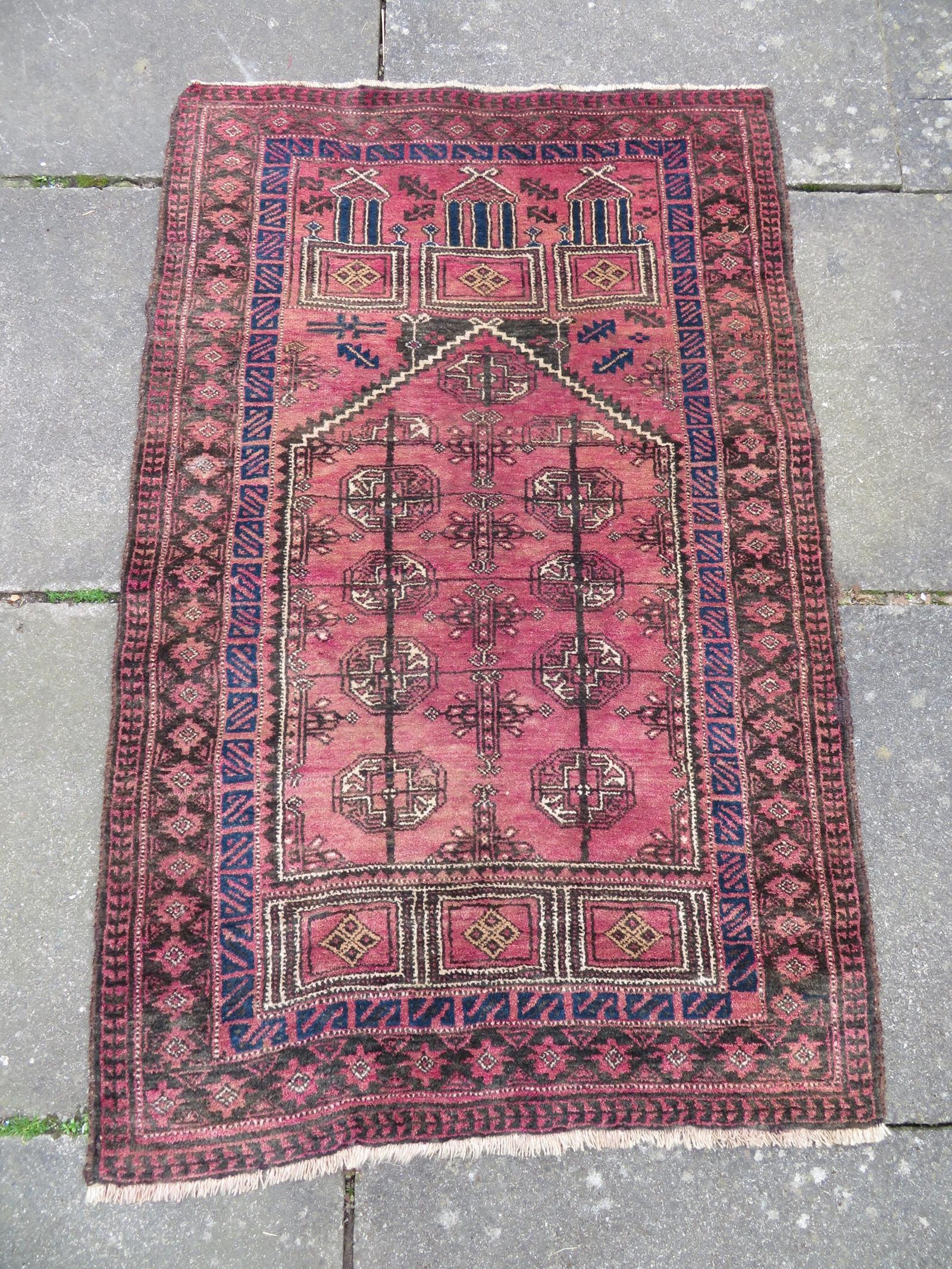 Old Afghan Turkmen Seh-mihrab Kizil Ayak Prayer Rug