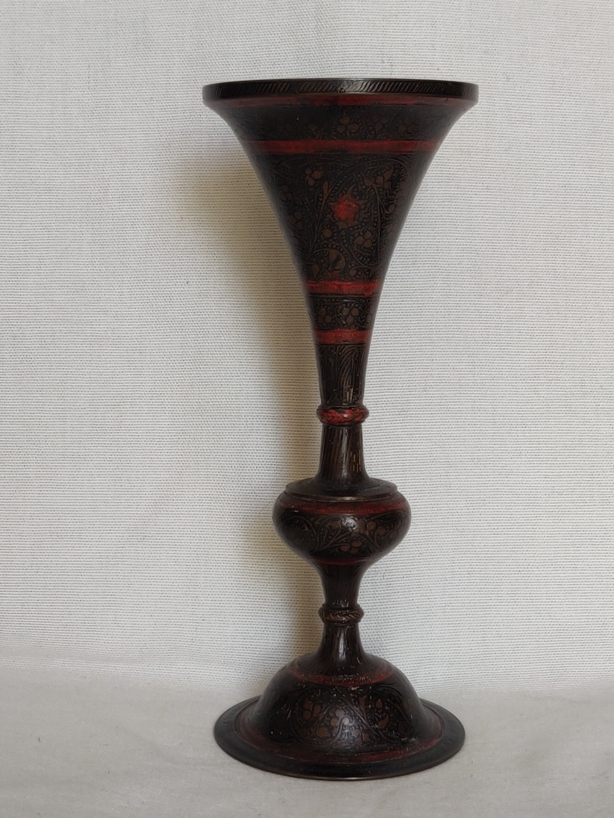 Old Anglo Indian Brass Engraved and Enamel Candle Holder/ Trumpet Vase circa 1930s